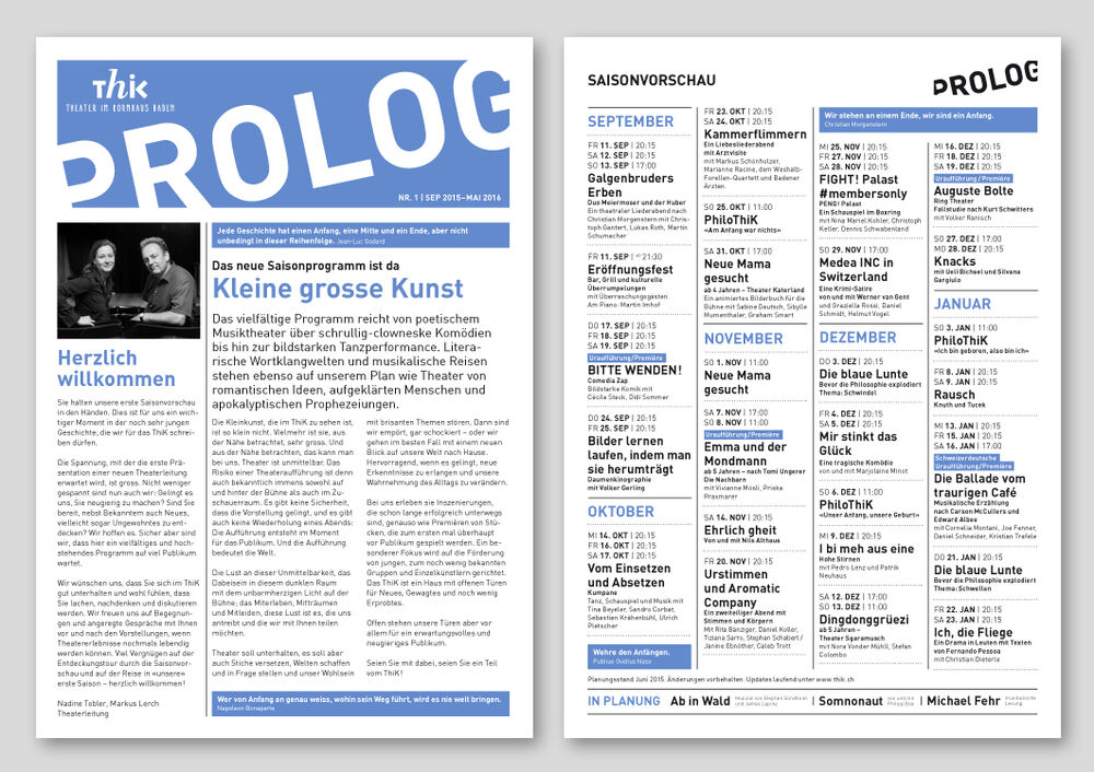 Gestaltung von Plakat und Flyer für die fulminante Eröffnung. Erstellen diverser Druckerzeugnisse wie Programmvorschau, Programmheft, Flyer und F4-Plakate alle zwei Monate.