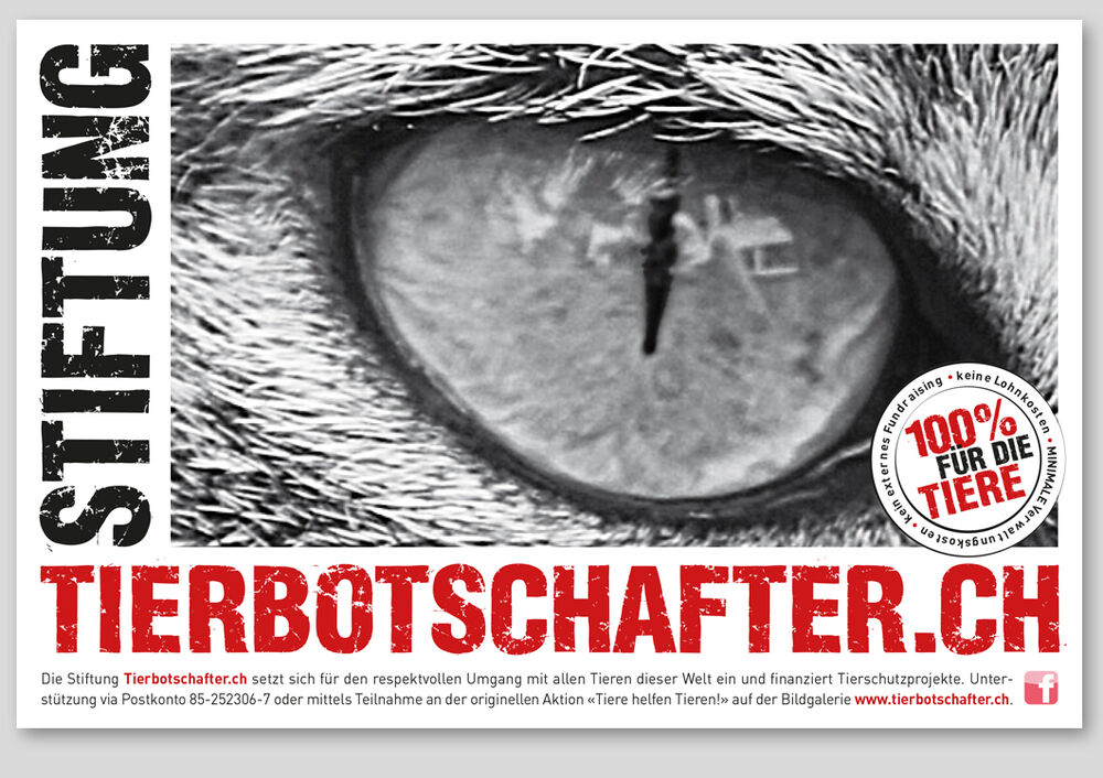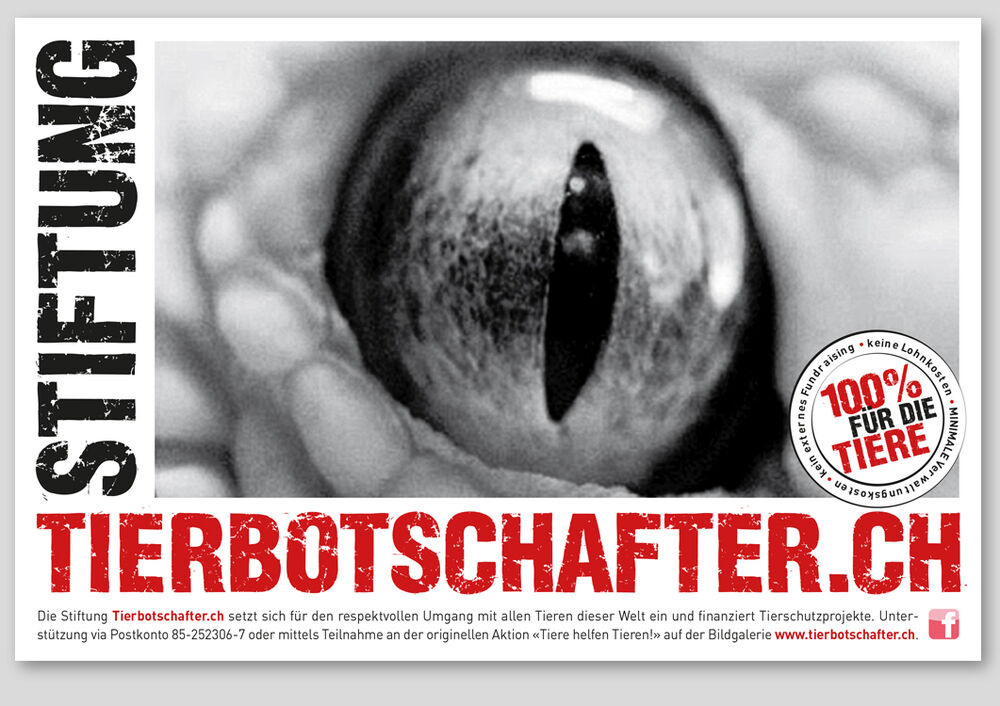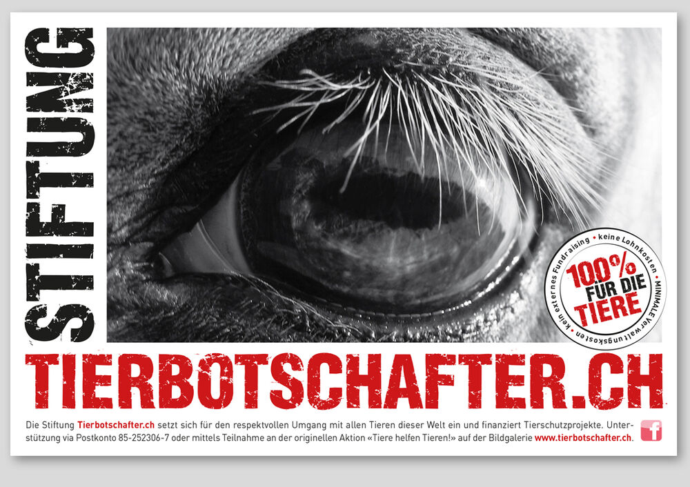 100 % für die Tiere. Die Stiftung Tierboschafter.ch unterstützt Tierschutzprojekte und verbreitet Botschaften zum Wohl der Tiere.